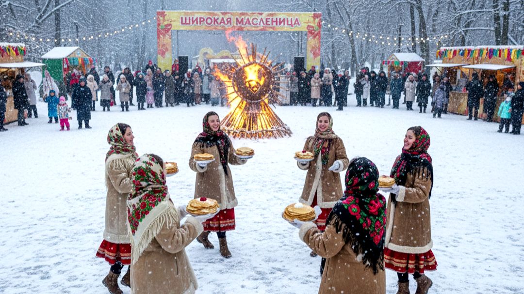 Видео из фото. Фото: «Женщины с блинами на Широкой Масленице». Песня — «Эй, широкая Масленица!»