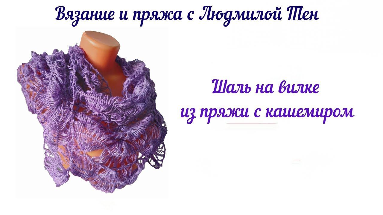 Шаль на вилке из пряжи с кашемиром