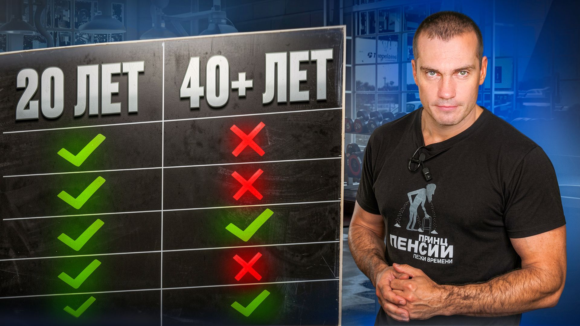 И перед тем, как я вам дам конкретные рекомендации, как вам стоит изменить ваши тренировки, давайте поговорим о том, какие изменения в теле происходят. Из курсов физиологии, которую я проходил в университете физкультуры, я знаю, что первым у человека начинает падать гибкость примерно уже лет после 20, потом начинает падать скорость реакции, скорость и реакция после 25, выносливость после 30, и сила, сила мышц — это то двигательное качество, которое можно развивать максимально долго. То есть и после 40 лет можно увеличивать силу и вплоть до 50, может быть, даже и больше. Но, но, чтобы увеличивать силу, нужно подымать большие веса. Чтобы подымать большие веса, нужны здоровые суставы. А здоровые суставы, точнее, суставы вообще — это расходный материал в нашем организме. Это то, что со временем только портится и никак не улучшается. Травмы с годами накапливаются, заживают все медленнее, некоторые травмы не заживают вообще до конца или заживают частично, и в итоге к 40 годам мы приходим с изношенными суставами. Это я знаю и по себе, это я знаю и по многим другим возрастным атлетам, что в качалке, что на занятиях по единоборствам. Так вот, где-то лет до 30 ты еще себя ощущаешь молодым, ну это вот свои ощущения рассказываю. 30-35 ты уже находишься на таком плато, как бы не молодой и не старый, где-то посередине. И после 35 ты уже ощущаешь, как тело начинает стареть. И ощущать ты это начинаешь именно, что касается суставов. Поэтому все мои дальнейшие рекомендации, как вам изменить вашу тренировку, будут вращаться именно вокруг суставов, потому что это первое, что изнашивается, первое, на что мы обращаем внимание, и первый такой стоп-фактор. Итак, первое — это общая разминка. Нужно дольше и тщательнее разминать ваши суставы. По-хорошему 10 минут — это растяжка и разогрев суставов, то есть вращательные движения, разминка суставов. Второе. Отказывайтесь от некоторых упражнений, а некоторые упражнения заменяйте на аналоги. Связано это не только с проблемами с суставами, но и в том, что с возрастом подвижность в суставах, даже если сустав полностью здоровый, подвижность в суставах ухудшается. Расскажу на своем примере. Раньше я легко и с хорошей техникой мог подтягиваться за голову, широким хватом, делать жим из-за головы. Все это я делать мог легко и спокойно. Сейчас же я либо это не могу делать вообще, либо с плохой техникой. Поэтому от упражнений, где нужно руки заводить за голову, я отказался вообще. Третье. Веса. Большие веса — это те веса, которые вы можете поднять на 1-6 повторений. Веса должны быть 80% от вашего одноповторного максимума и ниже. Не более 80%. Например, если вы жмете 100 кг на раз, тогда жмите в своих рабочих подходах максимум 80 кг. Что, в принципе, делаю и я. То есть я подымаю максимально на 8 повторений, то иногда больше стараюсь отталкиваться от 10 и больше повторений. Спроси меня сейчас, сколько я на раз пожму лежа, сделаю становую тягу или присяду со штангой, я не отвечу, потому что я не знаю. Я уже давным-давно не подымал на 1, 2, 3, 4 повторения. Четвертое. БАДы. БАДы. Если в молодости вы могли выезжать на одной картошке с сосисками, то сейчас уже нужно, увы, тратить деньги на БАДы. Хотя бы тысяч 10 в месяц лично у меня уходит. Что я вам посоветую? В первую очередь это препараты комплексные для суставов. Глюкозамин, хондроитин, МСМ (метилсульфонилметан, если полностью говор