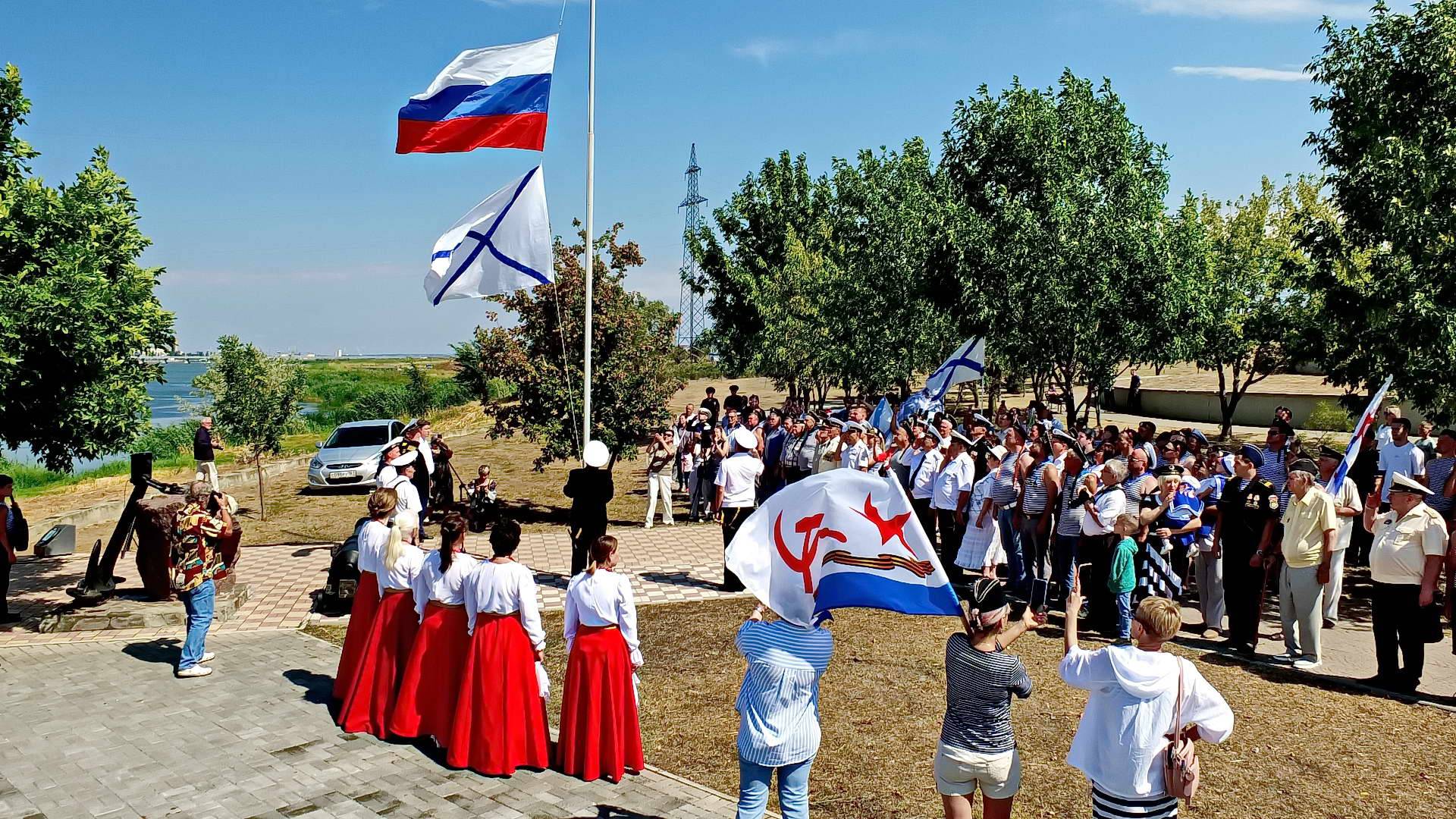 День ВМФ в Волгодонске - подъём флагов РВ и Андреевского на набережной
