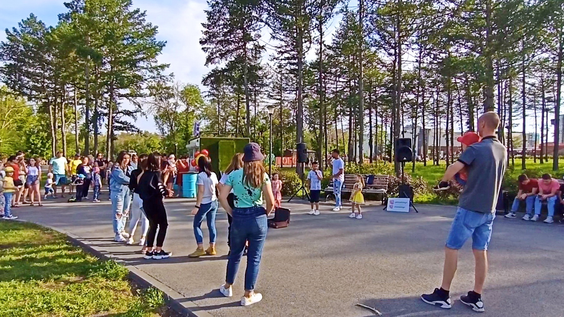 Субботняя прогулка в Правобережном районе города, праздничный день России в парке у Вечного огня, на площадке поют песни Ян и Шандор, девчонки танцуют... Магнитогорск, 12 июня 2021 года... Сбор донатов на видео-прогулки, https://yoomoney.ru/to/41001562873753 или https://www.donationalerts.com/r/spaceminator77
