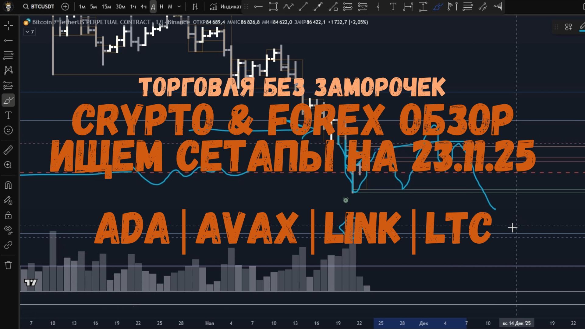 Всем салют, это Ден и «Трейдинг без заморочек»! Сегодня воскресенье — день, когда мы обязательно смотрим дневные уровни по крипте, даже если устроили себе выходной. Разобрали BTC, ETH, ADA, ATOM, AVAX, DOT, LINK, LTC, SOL, SUI и XRP. Ситуация спорная: часть активов стоит в зоне покупок, часть — в чётком шортовом тренде. Где-то явные пробои, где-то аккуратные манипуляции, где-то рынок держат за хвост. Главное правило — ждать свежий пробой и торговать по направлению тренда, а если структура грязная — просто пропустить. Обновлённые уровни я позже скину в телеграм — не забудь подписаться. И не ленись написать любой комментарий, это помогает каналу развиваться и мотивирует делать обзоры каждый день! 📲 Telegram с идеями и алертами: 📢 Telegram-канал → https://t.me/+Y5E6bMto4A1jMDYy 📡 Группа с алертами → https://t.me/+DDTG4iGhkPcwMjQy Всем удачи, профитов и покеда! ☕📉📈