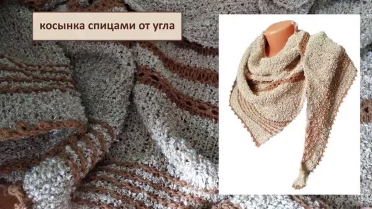 Косынка спицами от угла, мастер-класс