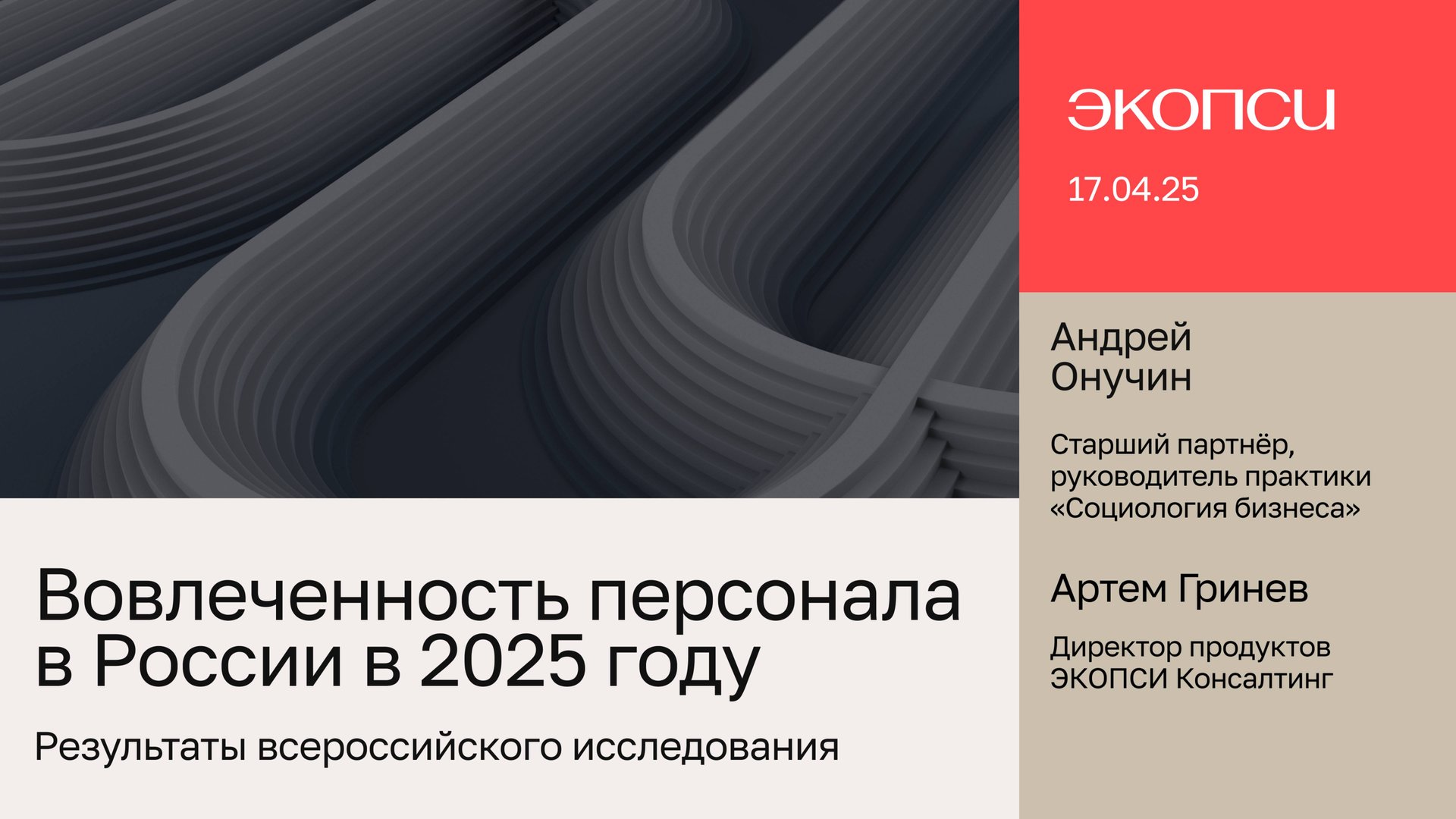 Что на самом деле думают сотрудники о компании, и как это влияет на развитие бизнеса? На вебинаре вместе с Андреем Онучиным и Артемом Гриневым разобрали ключевые барьеры, которые мешают удерживать и вовлекать сотрудников в 2025 году. Представим результаты всероссийского исследования вовлеченности персонала: что мотивирует людей оставаться в компании, какие факторы формируют их лояльность, а что, наоборот, подталкивает к уходу. Покажем топ-5 активаторов вовлеченности и главные причины увольнений, а также дадим практические рекомендации для HR и руководителей, основанные на данных исследования. На вебинаре разобрали: ◾ Какие тренды в вовлеченности определяют 2025 год? ◾ Как изменилось восприятие работы у сотрудников и руководителей? ◾ Топ-5 активаторов вовлеченности. Какие факторы сильнее всего влияют на вовлеченность? ◾ Топ-5 причин ухода. Какие факторы больше всего влияют на решение сотрудников уйти? ◾ Какие отрасли испытывают наибольшие риски? ◾ Что с этим делать? Как адаптировать HR-стратегию на основе реальных данных? Спикеры: ◾ Андрей Онучин Старший партнёр, руководитель практики «Социология бизнеса» ЭКОПСИ Консалтинг ◾ Артем Гринев Директор продуктов ЭКОПСИ Консалтинг