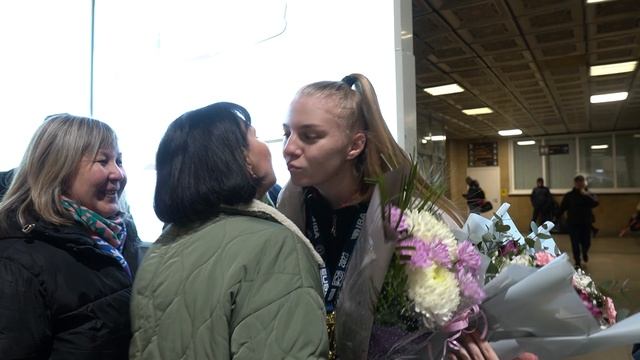 Встречаем в аэропорту Абакана с международного турнира Александру Фролову, чемпионку Европы по Боксу