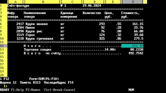 SuperCalc 4. Загружаем, редактируем, сохраняем