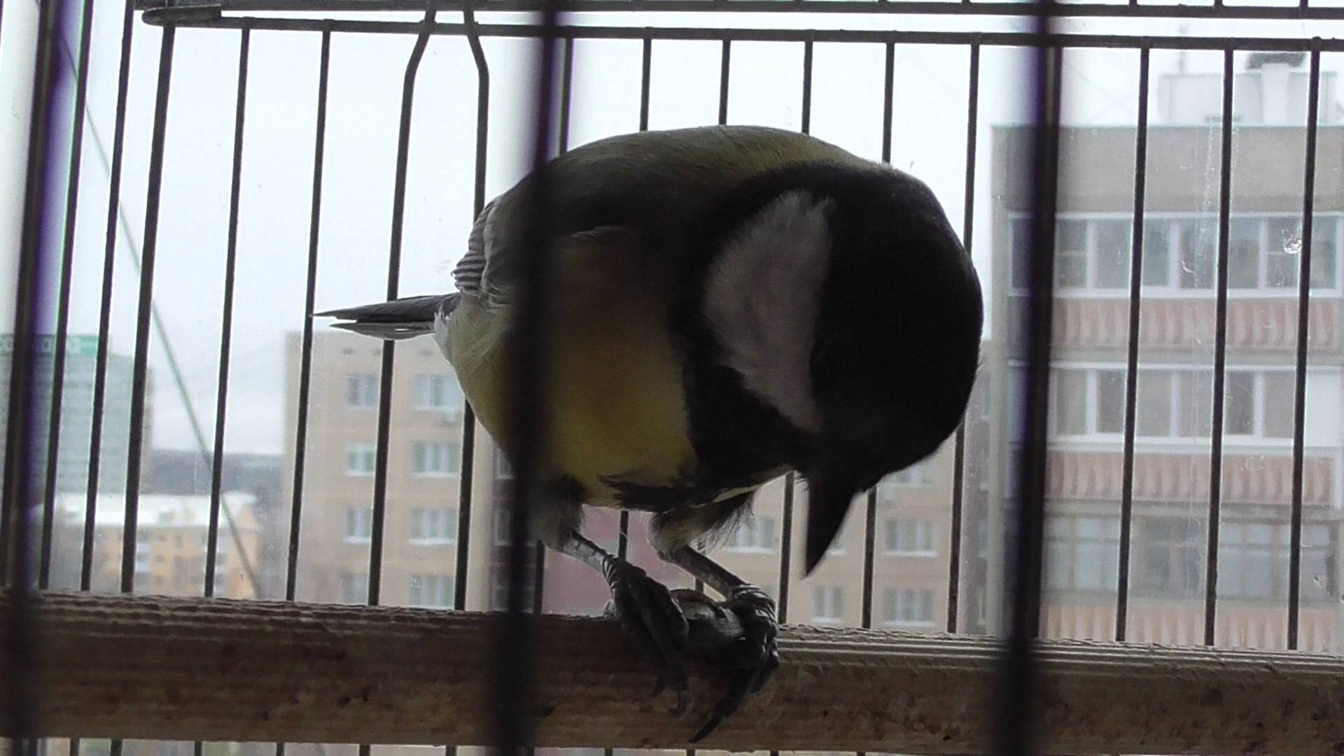 Большая птица синица в клетке
