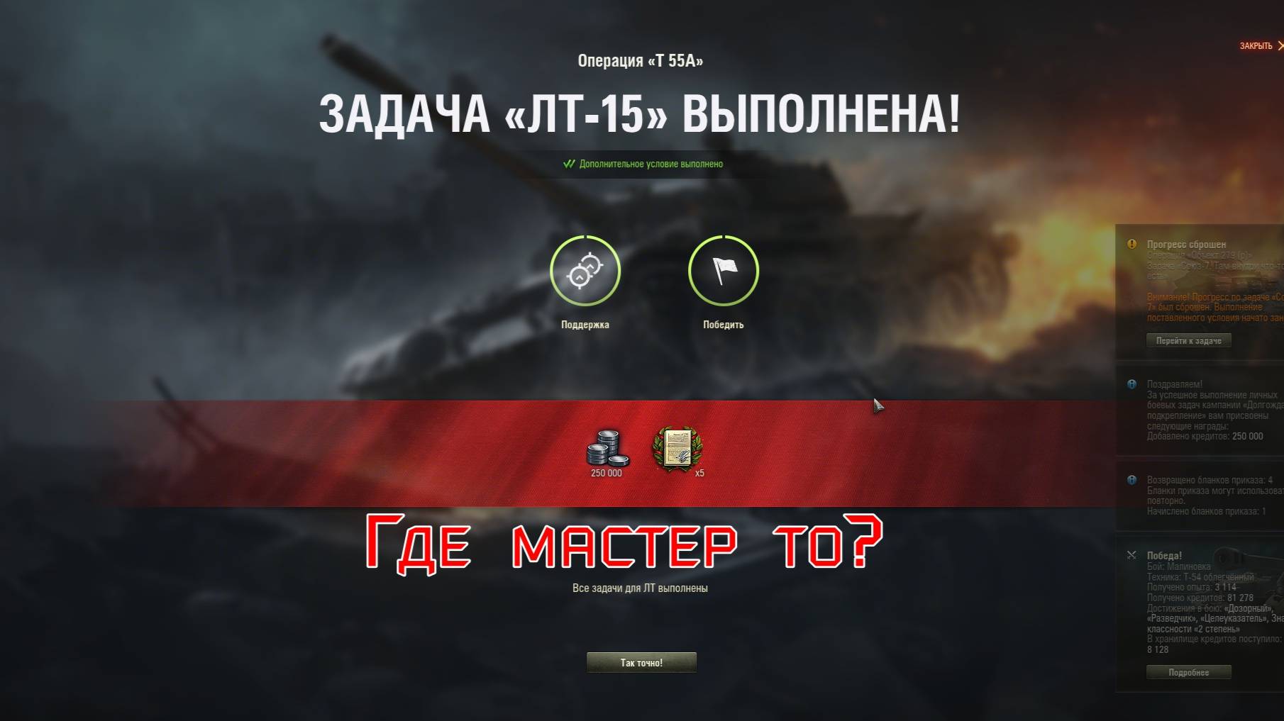 Мир Танков. ЛБЗ - 15 (Т-55А) ЛТ с отличием. Где мастер то?